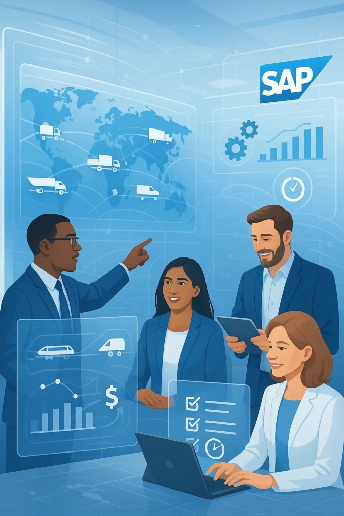 O SAP Transportation Management orquestra todo o ciclo do transporte: planejamento, execução, rastreamento e cálculo de frete. Permite otimizar rotas, colaborar com transportadores e reduzir custos logísticos com visibilidade em tempo real.